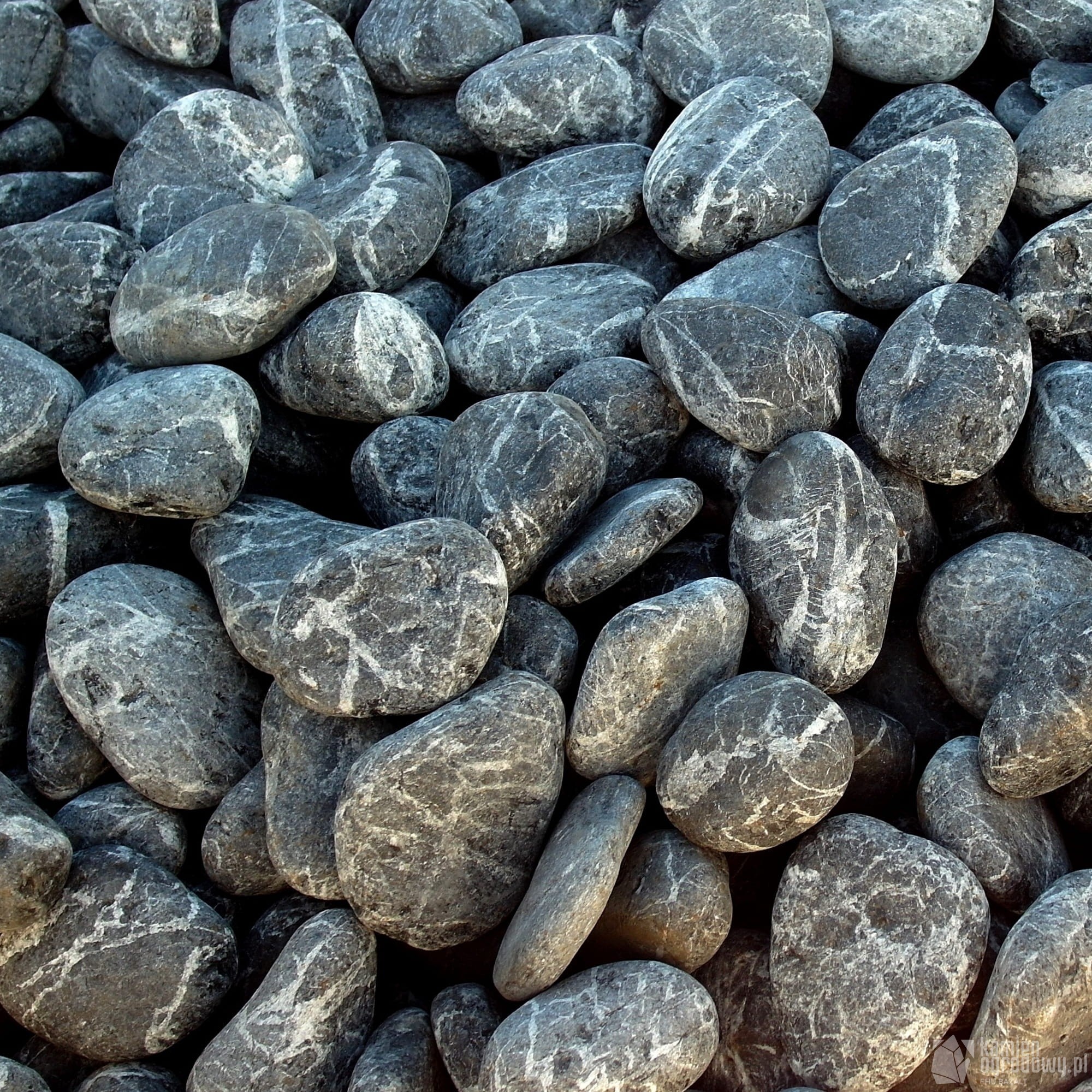 Otoczak marmurowy Negro 4/6cm jest czarny z białymi i szarmi żyłami, to bardzo dekoracyjny kamień idealny do dekoracji w ogrodzie i do wnętrz.