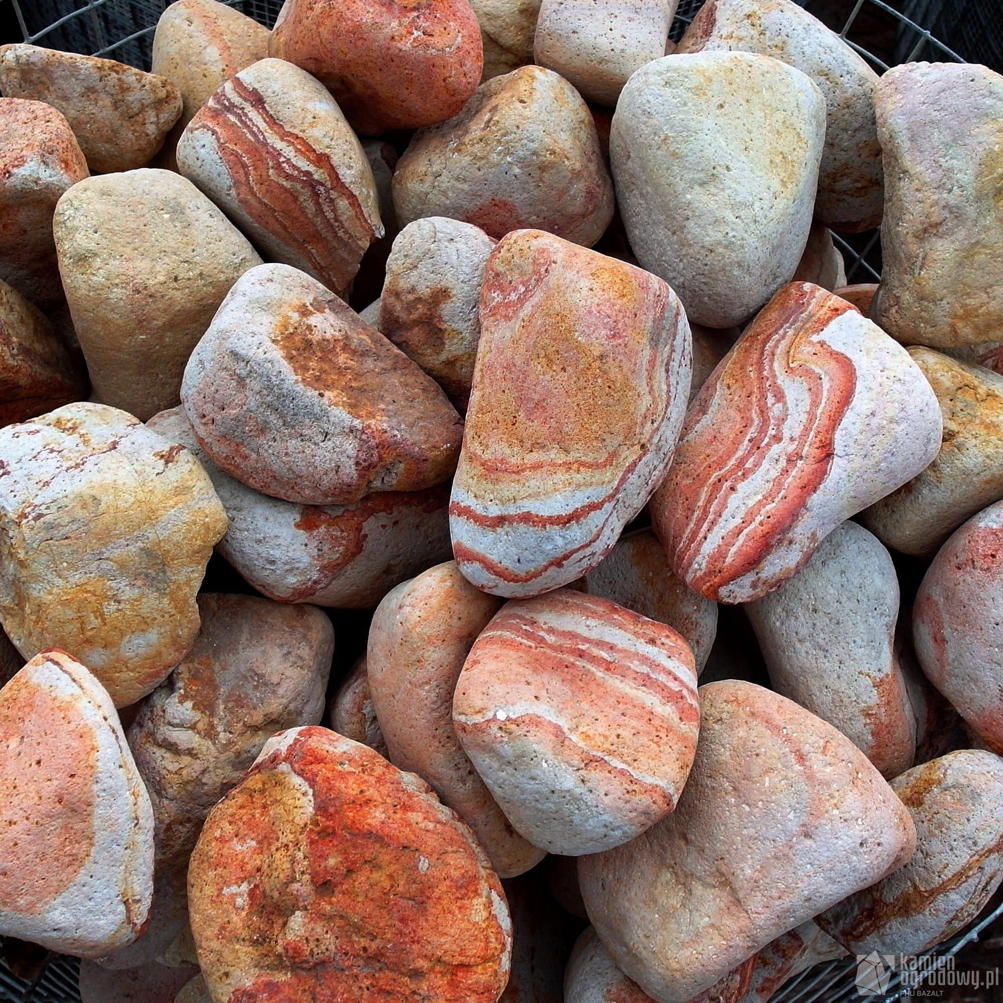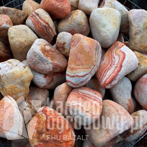 Otoczak Rainbow 6-8 cm jest w kolorach żółto pomarańczowym z żyłami, to bardzo dekoracyjny kamień idealny do dekoracji w ogrodzie i do wnętrz.