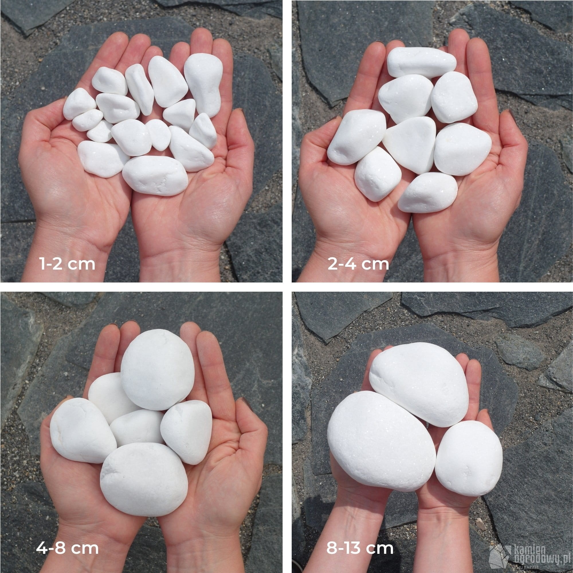 Otoczak Cristal White we frakcji 1-2 cm to wyjątkowy materiał pochodzący bezpośrednio z greckiej wyspy Thassos. Wyróżnia się on naturalną, śnieżnobiałą barwą, która jest znacznie czystsza i bardziej wyrazista niż w przypadku innych otoczaków marmurowych dostępnych na rynku. Jest to kamień I Gatunku, poddany procesowi otaczania, dzięki czemu jego krawędzie są gładkie i przyjemne w dotyku. Drobna frakcja sprawia, że kamień ten idealnie nadaje się do precyzyjnych wykończeń w ogrodzie i we wnętrzach.