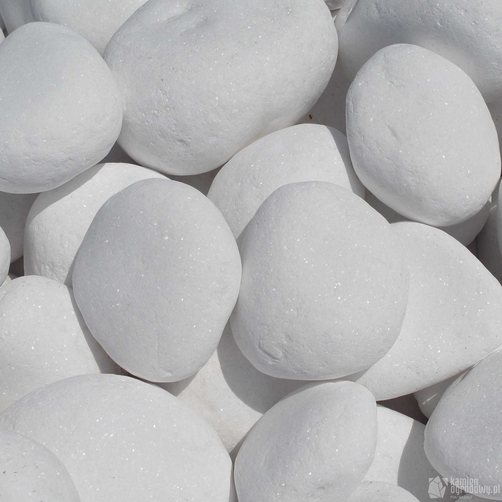 Otoczak Cristal White we frakcji 8-13 cm to okazały materiał z naszej oferty, pochodzący bezpośrednio z greckiej wyspy Thassos. Wyróżnia się on naturalną, śnieżnobiałą barwą oraz imponującym rozmiarem poszczególnych brył. Jest to kamień I Gatunku, poddany procesowi otaczania, dzięki czemu te masywne elementy są pozbawione ostrych krawędzi, przypominając naturalne rzeczne głazy. Tak duża frakcja dedykowana jest tam, gdzie liczy się efekt monumentalny i stabilność.