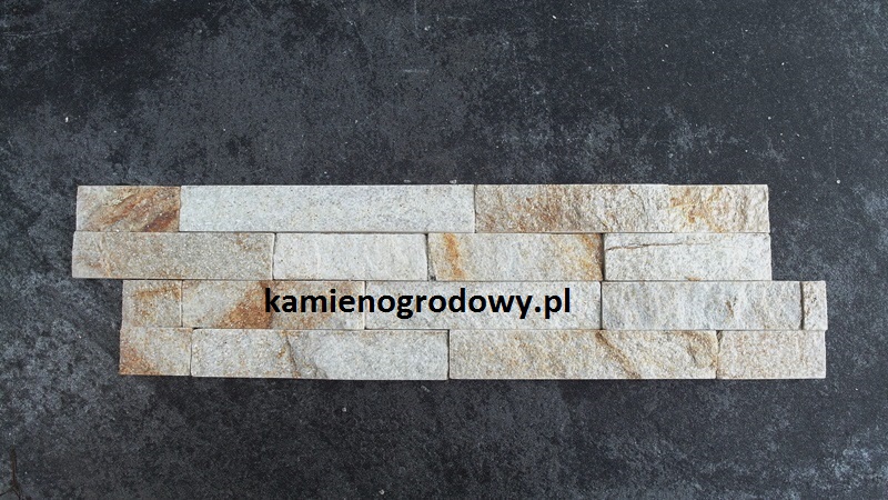 Panel wykonany jest z kamienia naturalnego pociętego w cienkie płytki. Gnejs jasno złoty to kamień naturalny dekoracyjny, wyróżnia się pieknym kolorem z dużą zawartościa błyszczących drobinek miki, pasuje do tradycyjnych aranżacji wnętrz i elewacji.