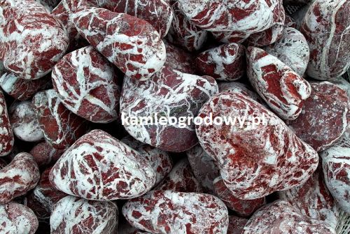 Otoczak marmurowy Cherry White jest bordowy z białymi żyłami, to bardzo dekoracyjny kamień idealny do dekoracji w ogrodzie i do wnętrz.